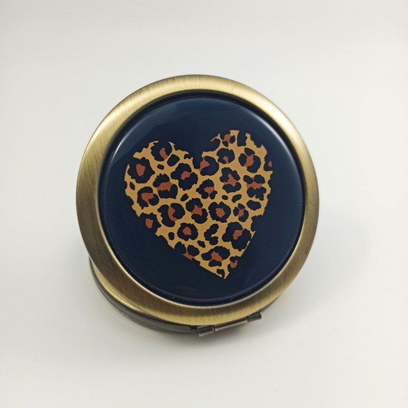 Adorable miroir de poche en laiton couleur bronze au motif léopard !