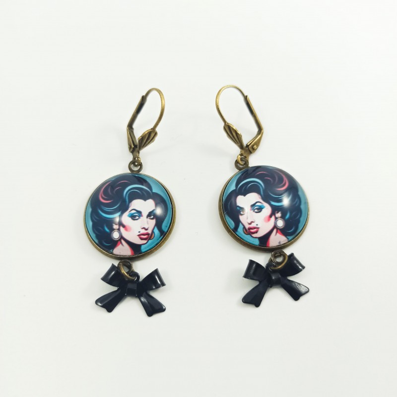 Boucles d'oreilles cabochons à l'effigie de la légendaire Amy Winehouse.