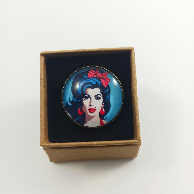Bague cabochon à l'effigie de la légendaire Amy Winehouse.