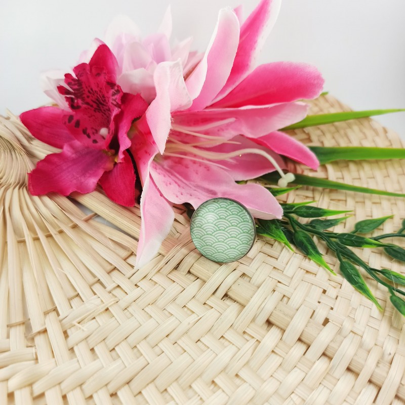 Bague cabochon vagues japonaises