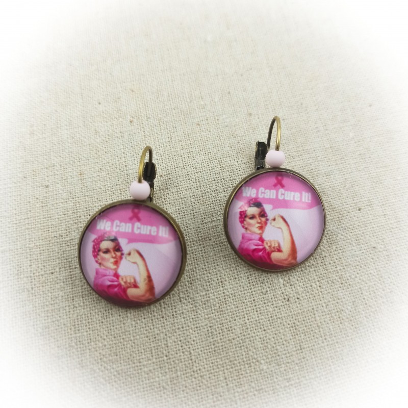 Jolies boucles d'oreilles cabochons au motif spécial Octobre Rose.