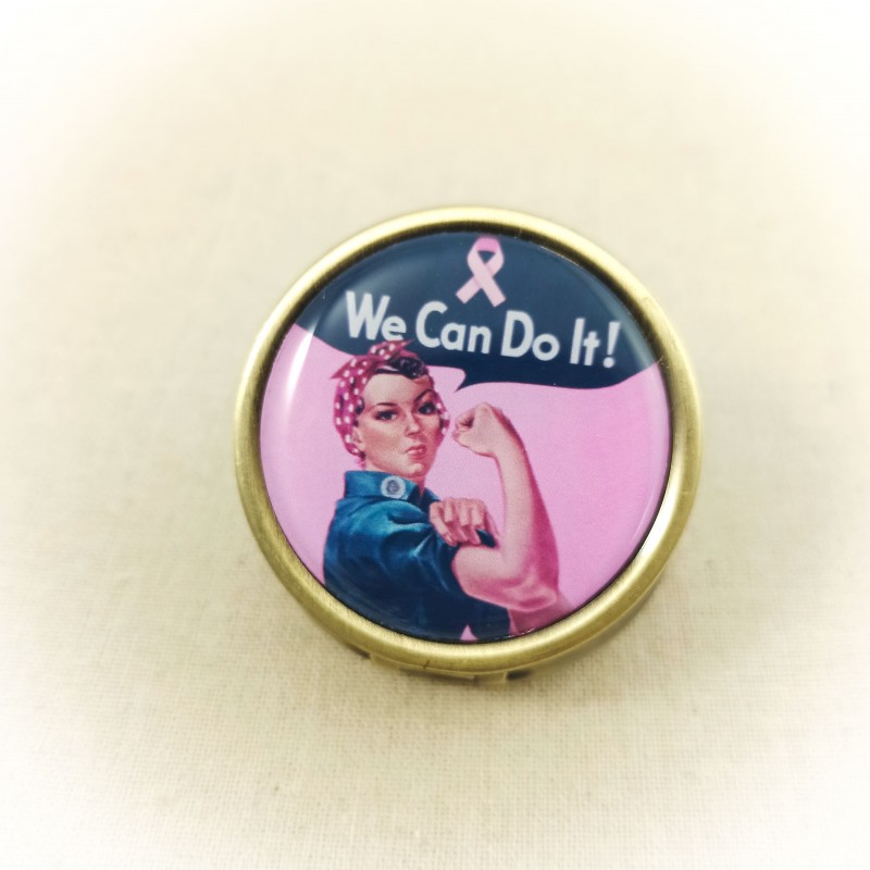 Joli pilulier Octobre Rose à l'effigie de Rosie la Riveteuse