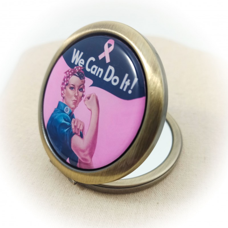 Joli miroir de sac à main OCTOBRE ROSE à l'effigie de Rosie la Riveteuse
