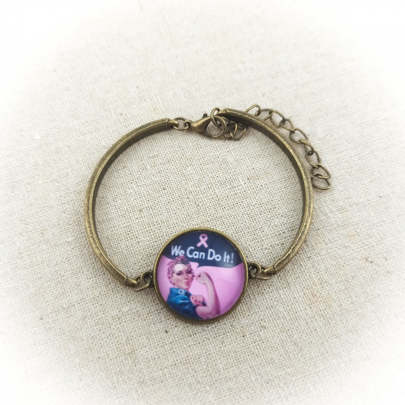 Bracelet cabochon OCTOBRE ROSE Rosie la Riveteuse 1