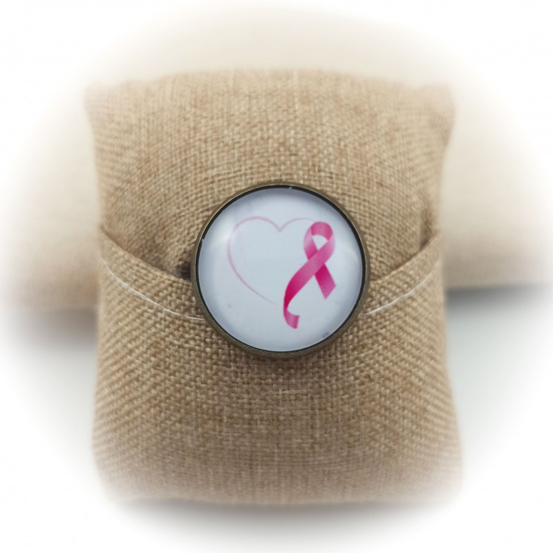 Jolie bague cabochons au motif spécial Octobre Rose.