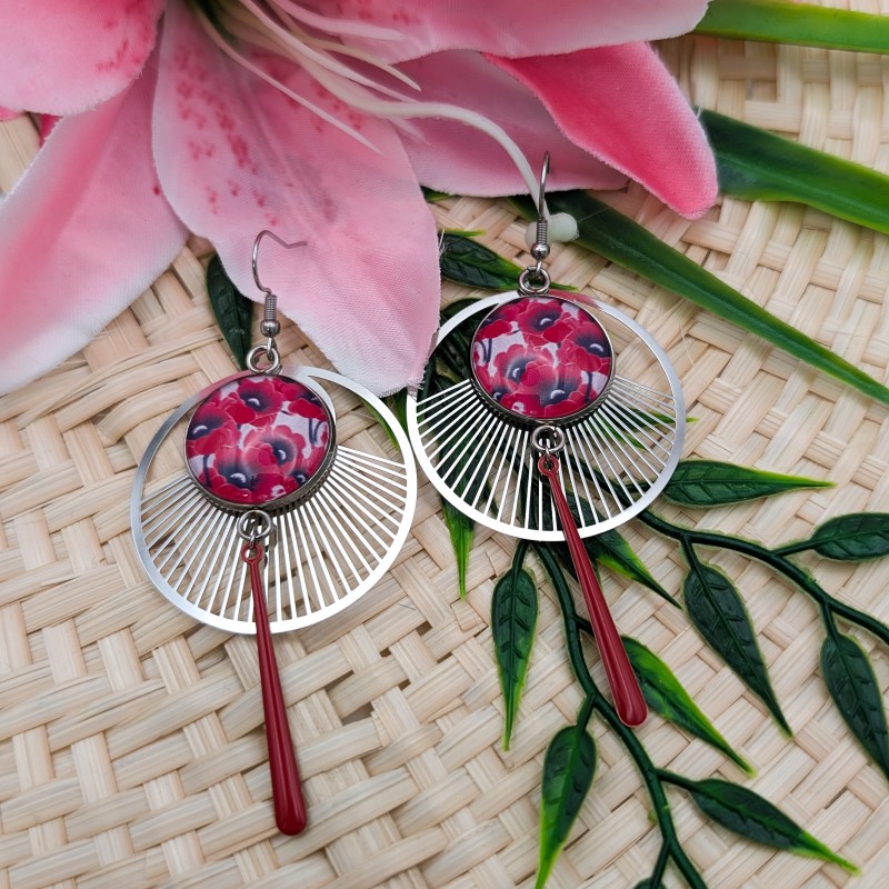 Jolies boucles d'oreilles maxi breloques en acier argenté avec cabochons