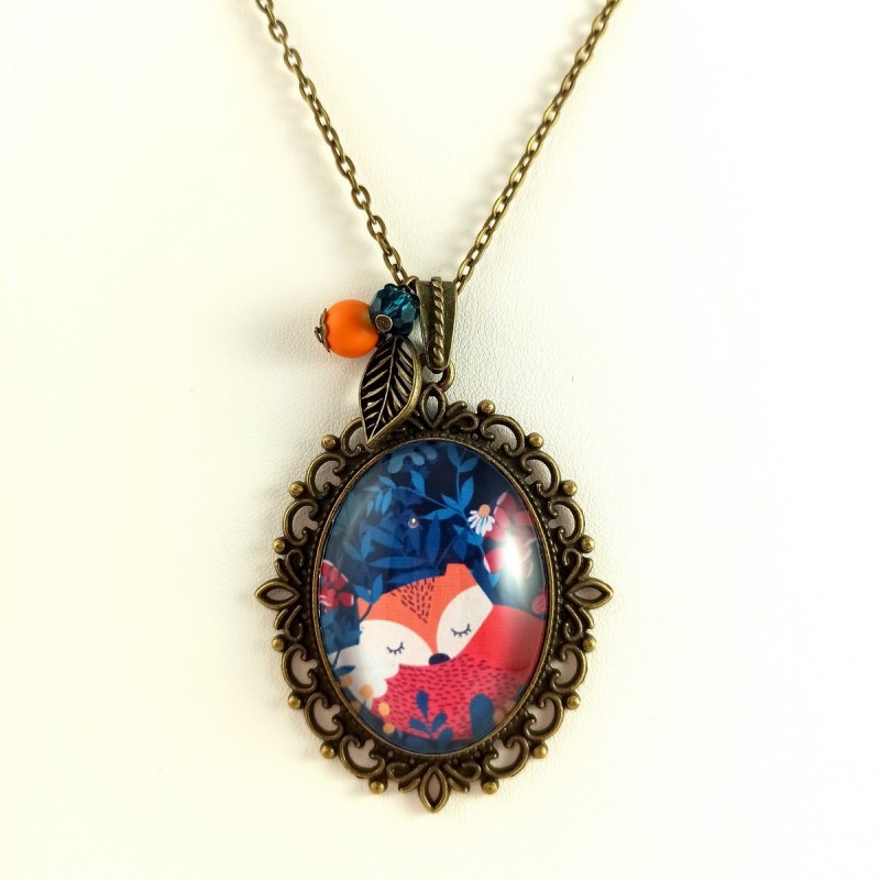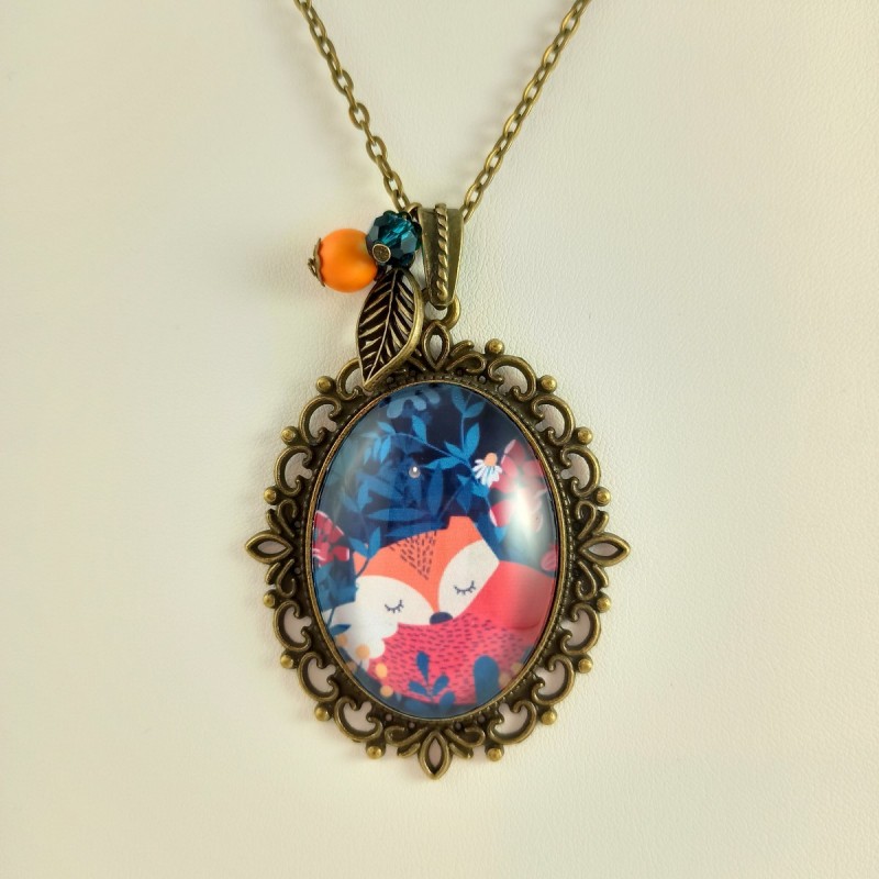 Adorable sautoir représentant un petit renard endormi tout choupi !