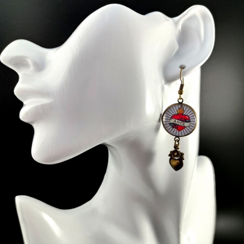 Boucles d'oreilles cabochons à breloques "AMOR"