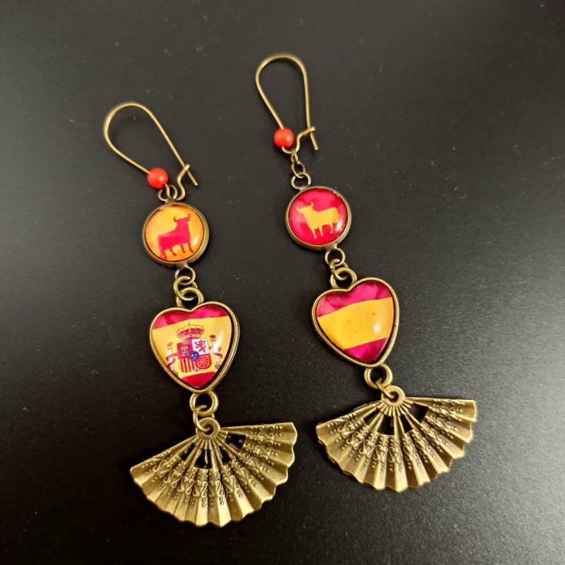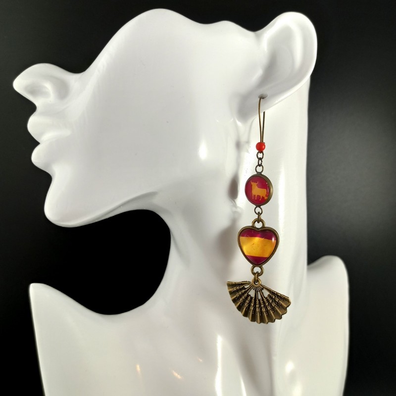 Longues boucles d'oreilles double-cabochons dépareillées "¡Viva España!"