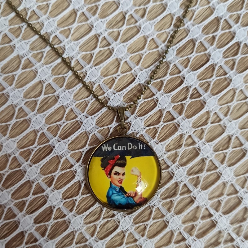Joli collier cabochon à l'effigie de Rosie la Riveteuse version rock'n'roll !