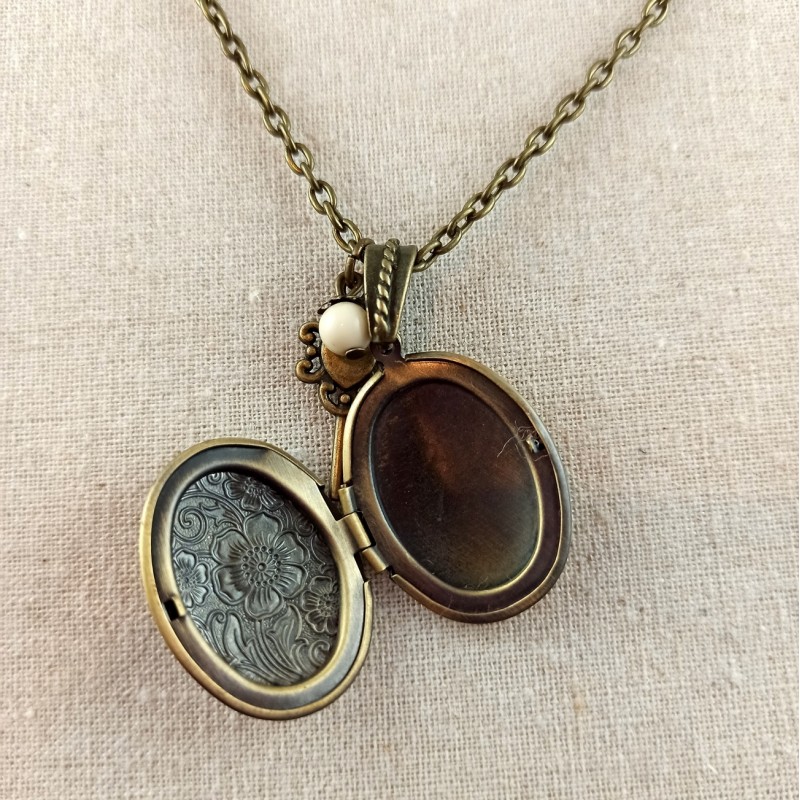 Joli sautoir avec pendentif médaillon. Glissez-y une photo ou un mot doux !