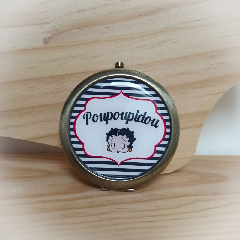 Adorable miroir de poche en laiton couleur bronze à l'effigie de Betty Boop !