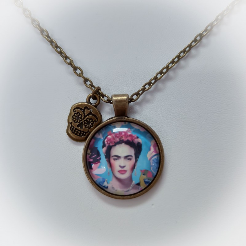 Joli collier à l'effigie de l'iconique artiste mexicaine Frida Kahlo.