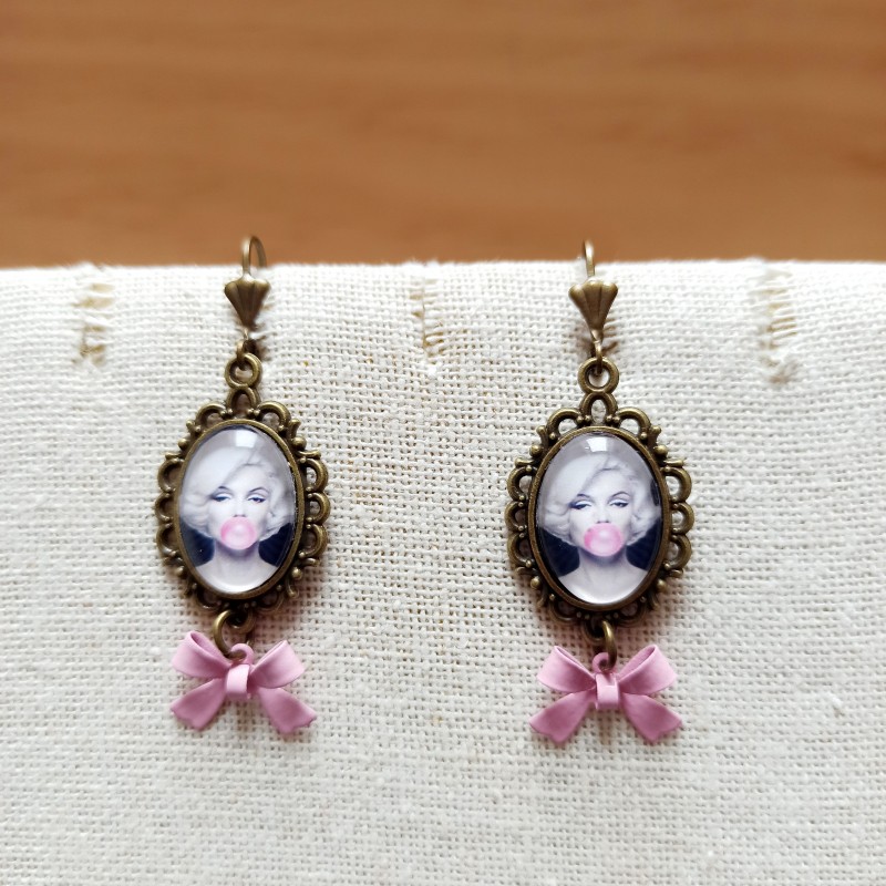 Adorables boucles d'oreilles à l'effigie de Marilyn Monroe en mode bulle de chewing-gum !