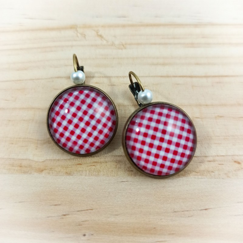Boucles d'oreilles avec cabochons en verre et perles assorties