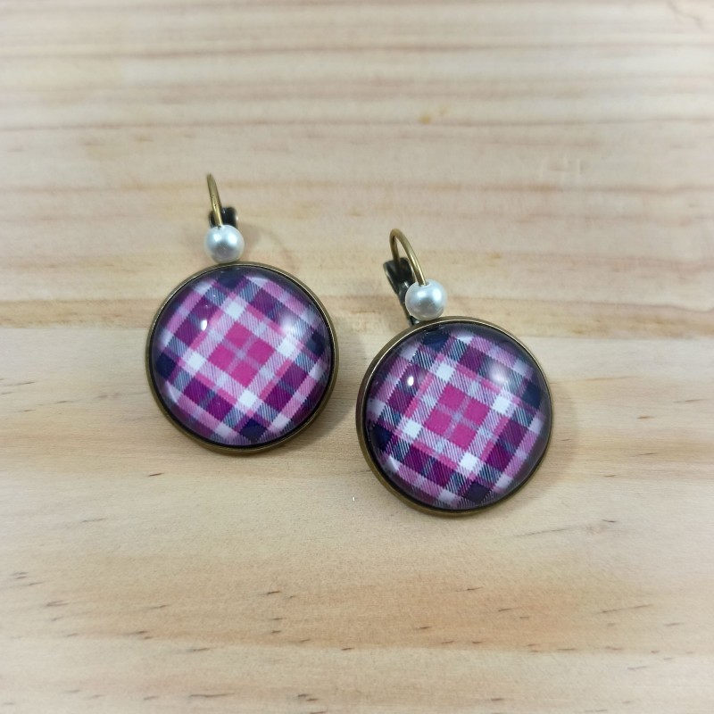 Boucles d'oreilles avec cabochons en verre et perles assorties
