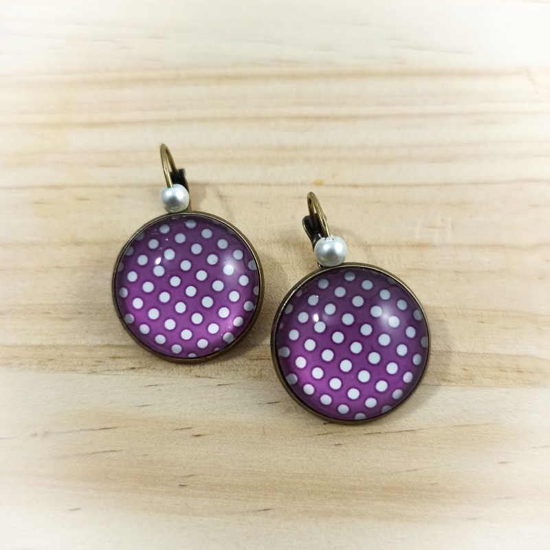 Boucles d'oreilles avec cabochons en verre et perles assorties