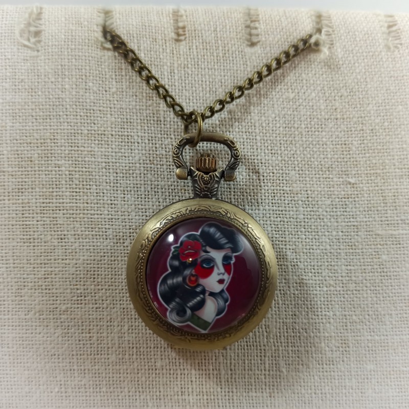 Montre à gousset cabochon sur chaîne sautoir de 75cm