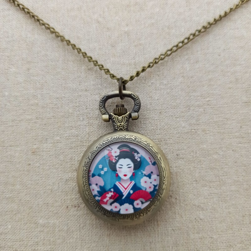 Montre à gousset cabochon sur chaîne sautoir de 75cm