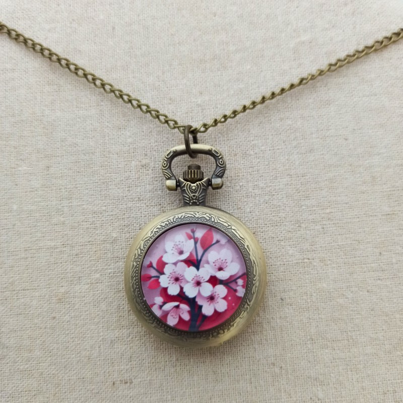 Montre à gousset cabochon sur chaîne sautoir de 75cm