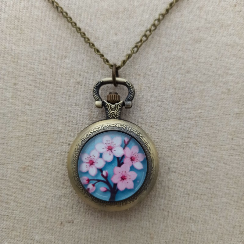 Montre à gousset cabochon sur chaîne sautoir de 75cm