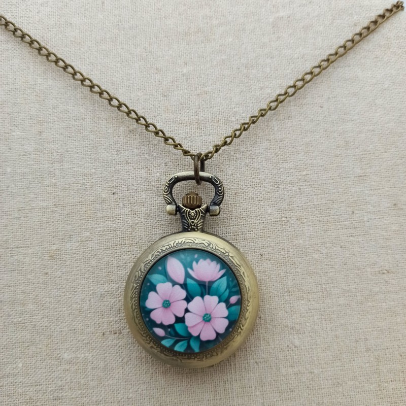 Montre à gousset cabochon sur chaîne sautoir de 75cm