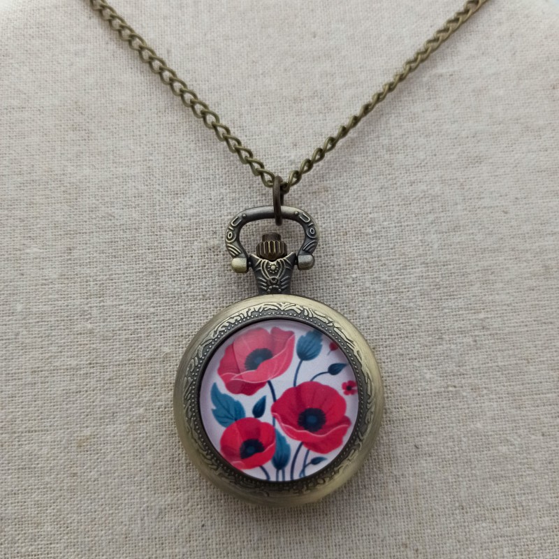 Montre à gousset cabochon sur chaîne sautoir de 75cm