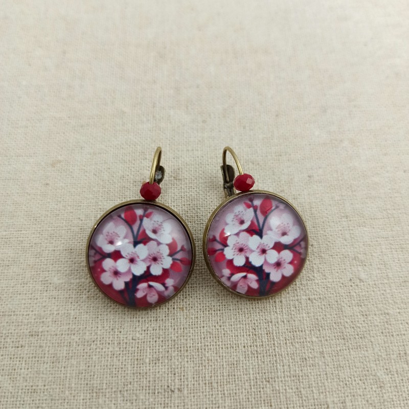 Jolies boucles d'oreilles cabochons avec perles