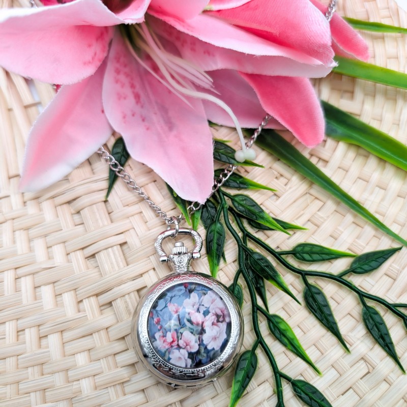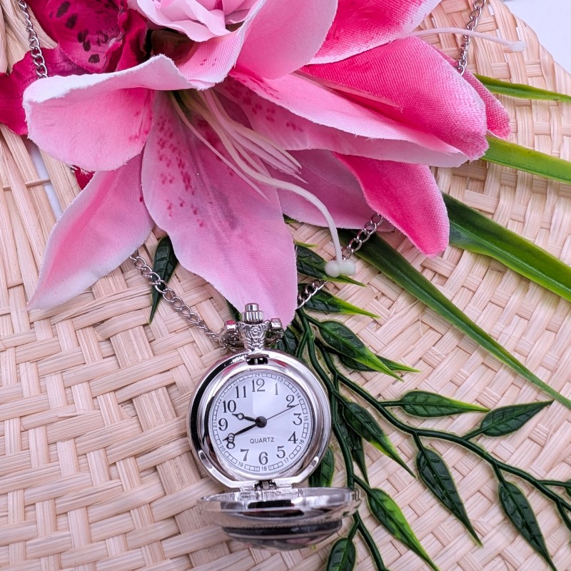 Montre à gousset cabochon sur chaîne sautoir de 75cm