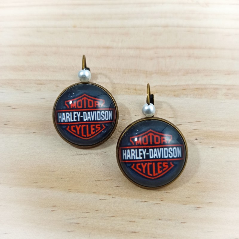 Boucles d'oreilles cabochon Harley Davidson